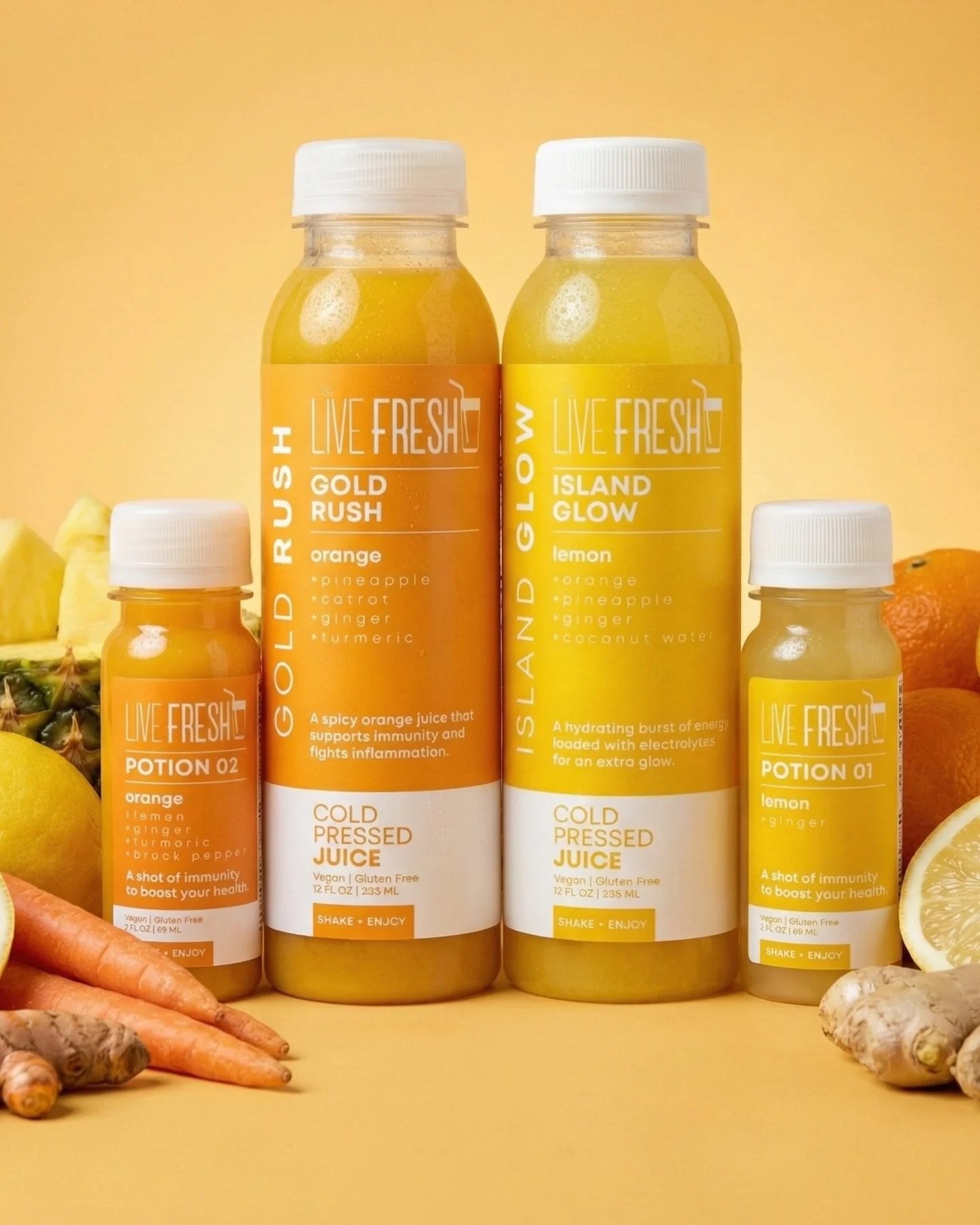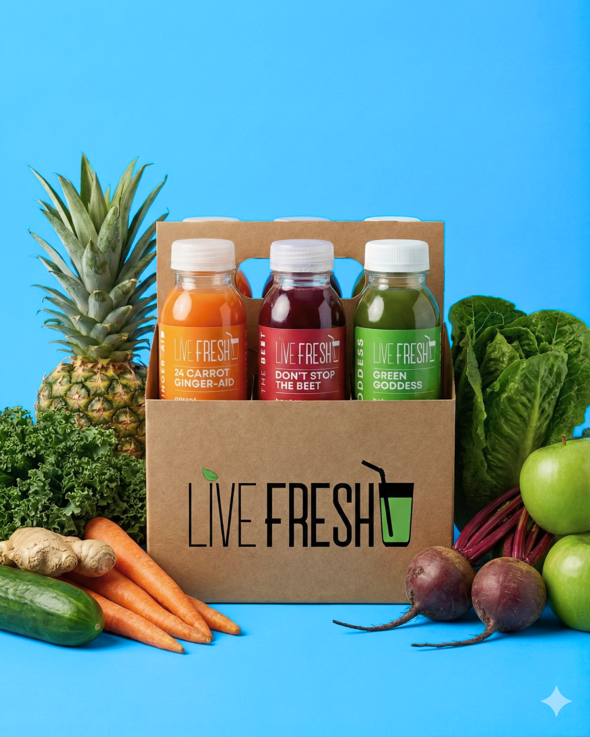 Your favorite Live Fresh juices, delivered right to your doorstep! Each bottle is cold-pressed and made fresh with real ingredients, then shipped in insulated packaging to ensure it stays perfectly chilled. We offer fast, reliable delivery straight from our kitchen to you, and every juice has an extended shelf life thanks to HPP — so you get maximum freshness in every sip. Skip the grocery store and sip the good stuff!