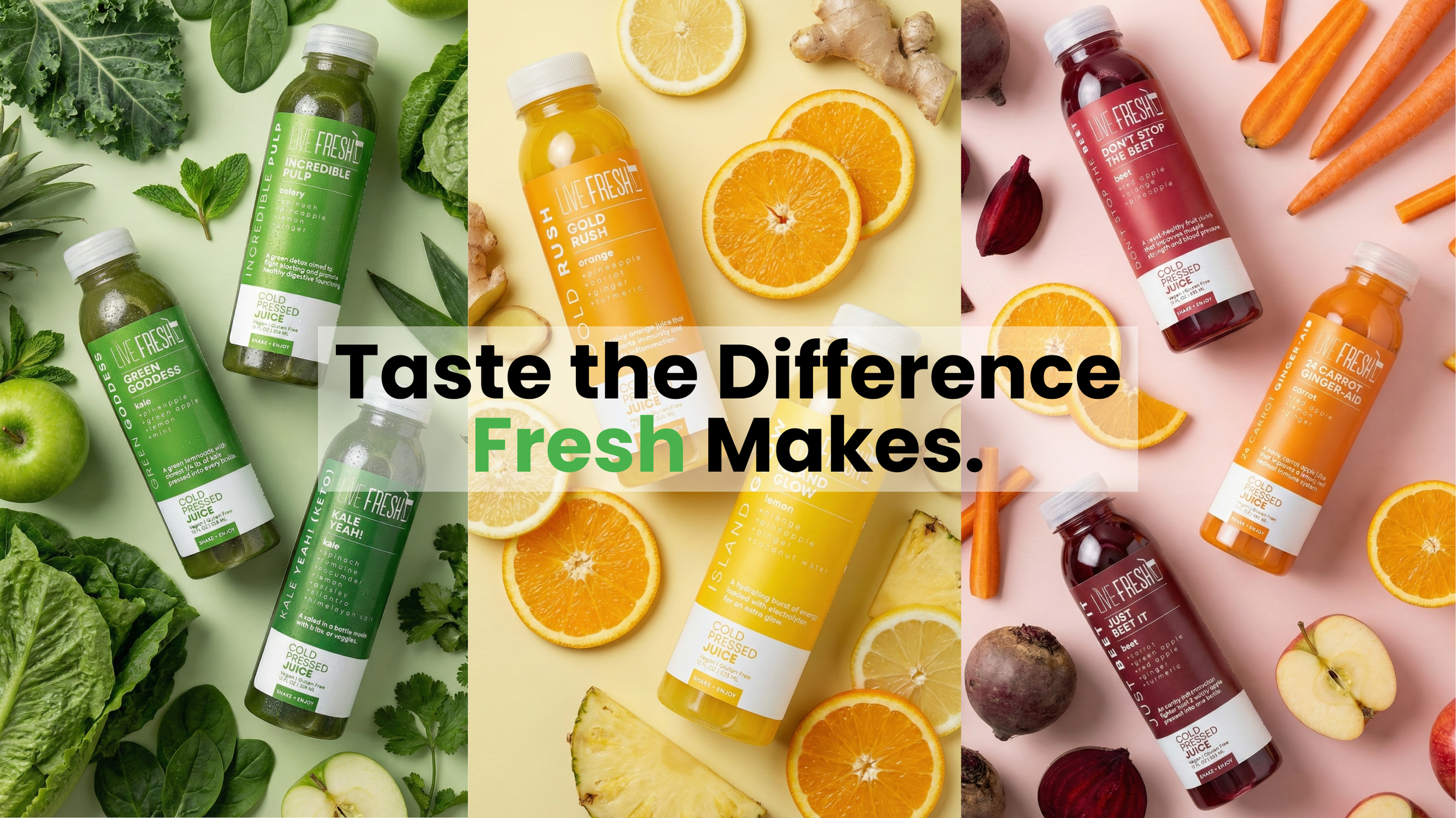 Your favorite Live Fresh juices, delivered right to your doorstep! Each bottle is cold-pressed and made fresh with real ingredients, then shipped in insulated packaging to ensure it stays perfectly chilled. We offer fast, reliable delivery straight from our kitchen to you, and every juice has an extended shelf life thanks to HPP β so you get maximum freshness in every sip. Skip the grocery store and sip the good stuff!