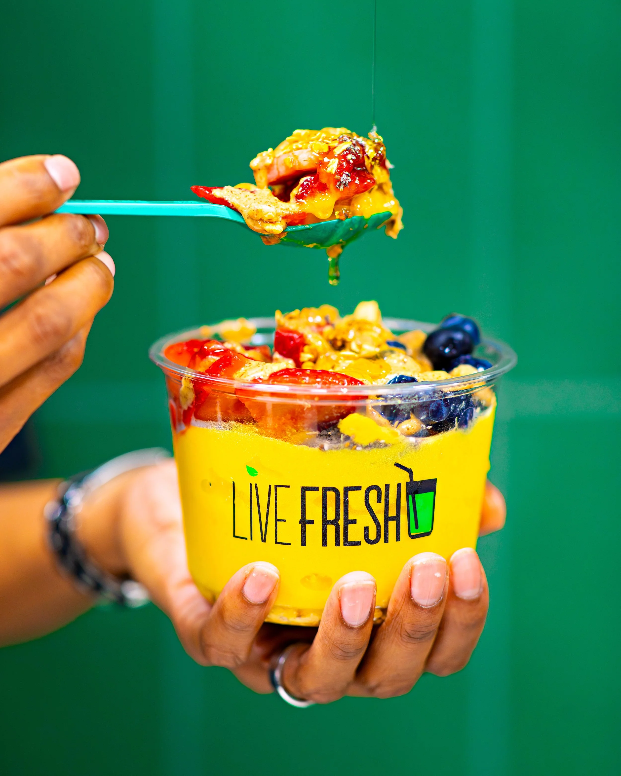 Bring something better to the table. Live Fresh offers wholesome catering with cold-pressed juices, fruit-forward smoothies, açaí bowls, and nourishing bites — all made fresh. Ideal for office lunches, team events and wellness-focused gatherings across Pittsburgh.